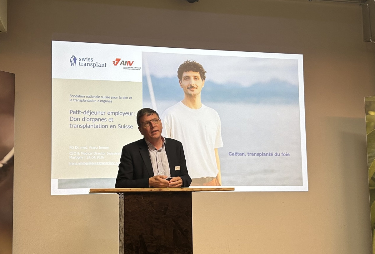 Avec l’introduction du système élargi du consentement présumé en 2027, la décision pour ou contre le don d’organes à partir de 16 ans nous incombe. Ceux qui ne souhaitent pas faire de don doivent à un moment donné se prononcer afin que la situation soit claire si la question devait être posée. Dans ce contexte, PD Dr médecin Franz Immer, nous a éclairé sur les fréquences des dons d’organes, la situation sur la liste d’attente, mais aussi sur la qualité de vie et de la réintégration dans le monde du travail après une transplantation d’organe.